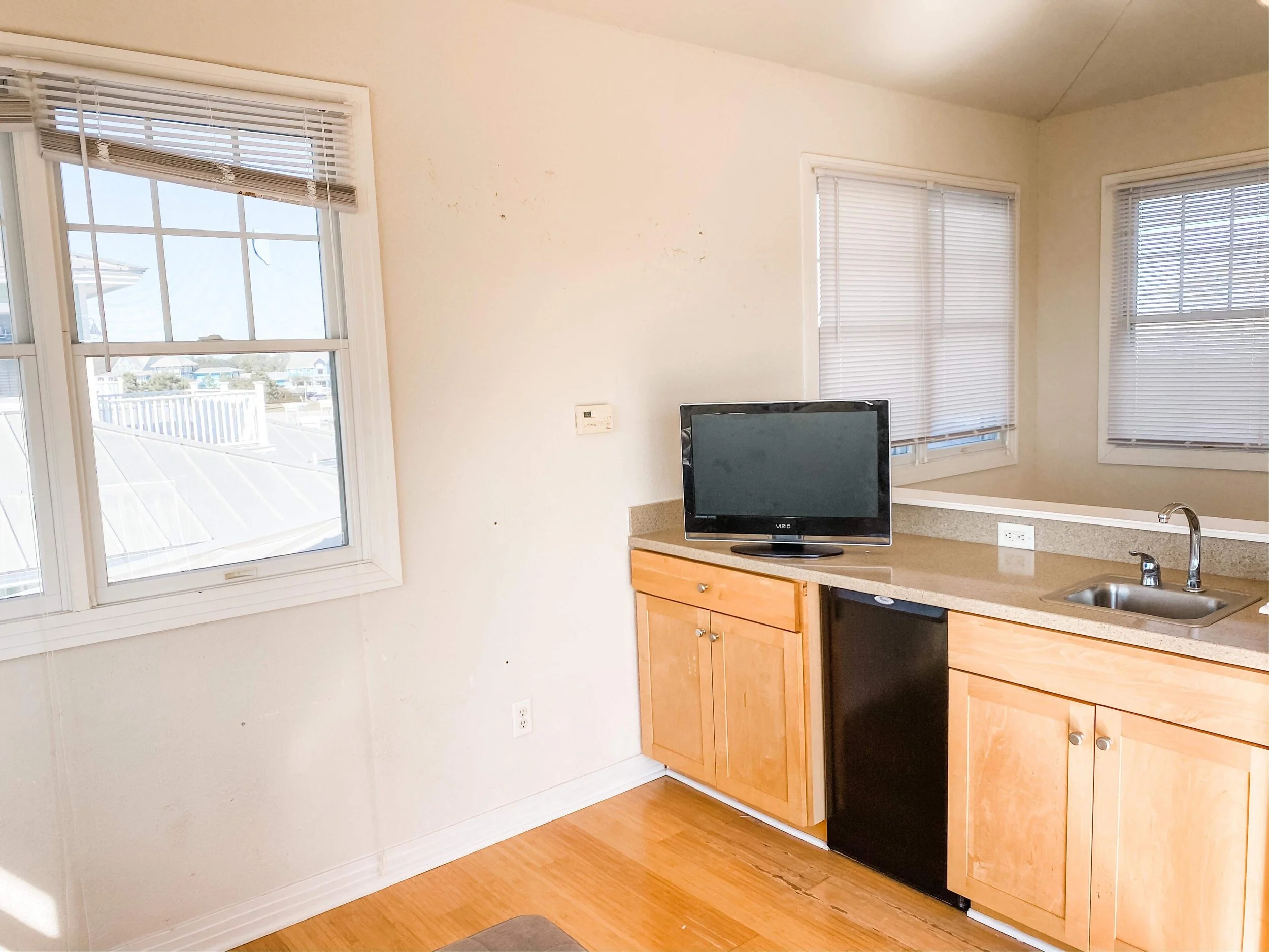 The crow’s nest is located on the third floor and features a wet bar, refrigerator, a television with cable TV, and a queen sofa sleeper. This private get-away has a three-sided wrap-around deck which has sprawling views of the water.